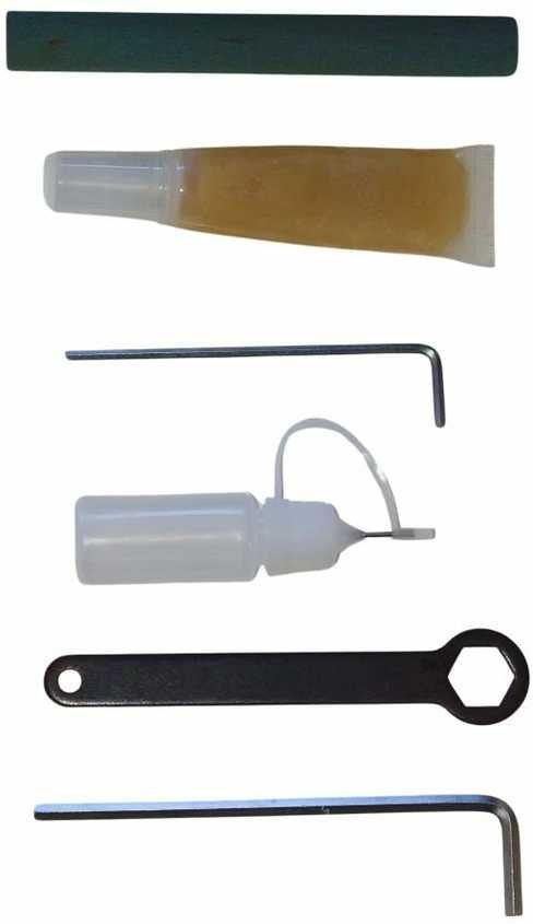 - Buteliukas su tepimo alyva ir švirkštas.