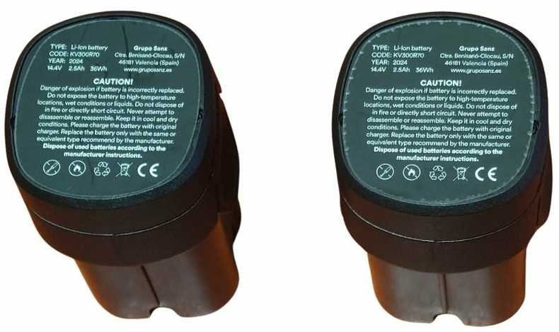 Komplekte dvi ličio 14,4V – 2,5 Ah baterijos – bendras veikimo laikas yra iki šešių valandų, išlaikant didelę 150 W bešepetėlio variklio galią.